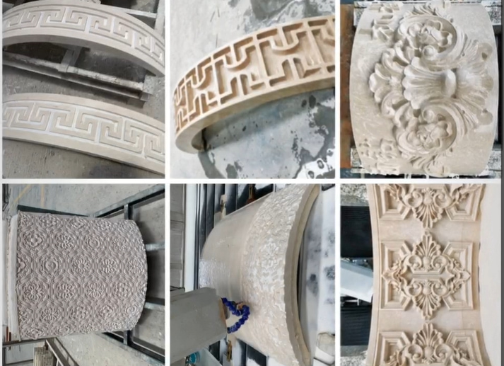 3) Processamento eficiente de placas curvas: Reduz drasticamente o tempo de produção de painéis arqueados, colunas cilíndricas e outras superfícies de pedra não planas, permitindo a escultura contínua ao longo da curva.